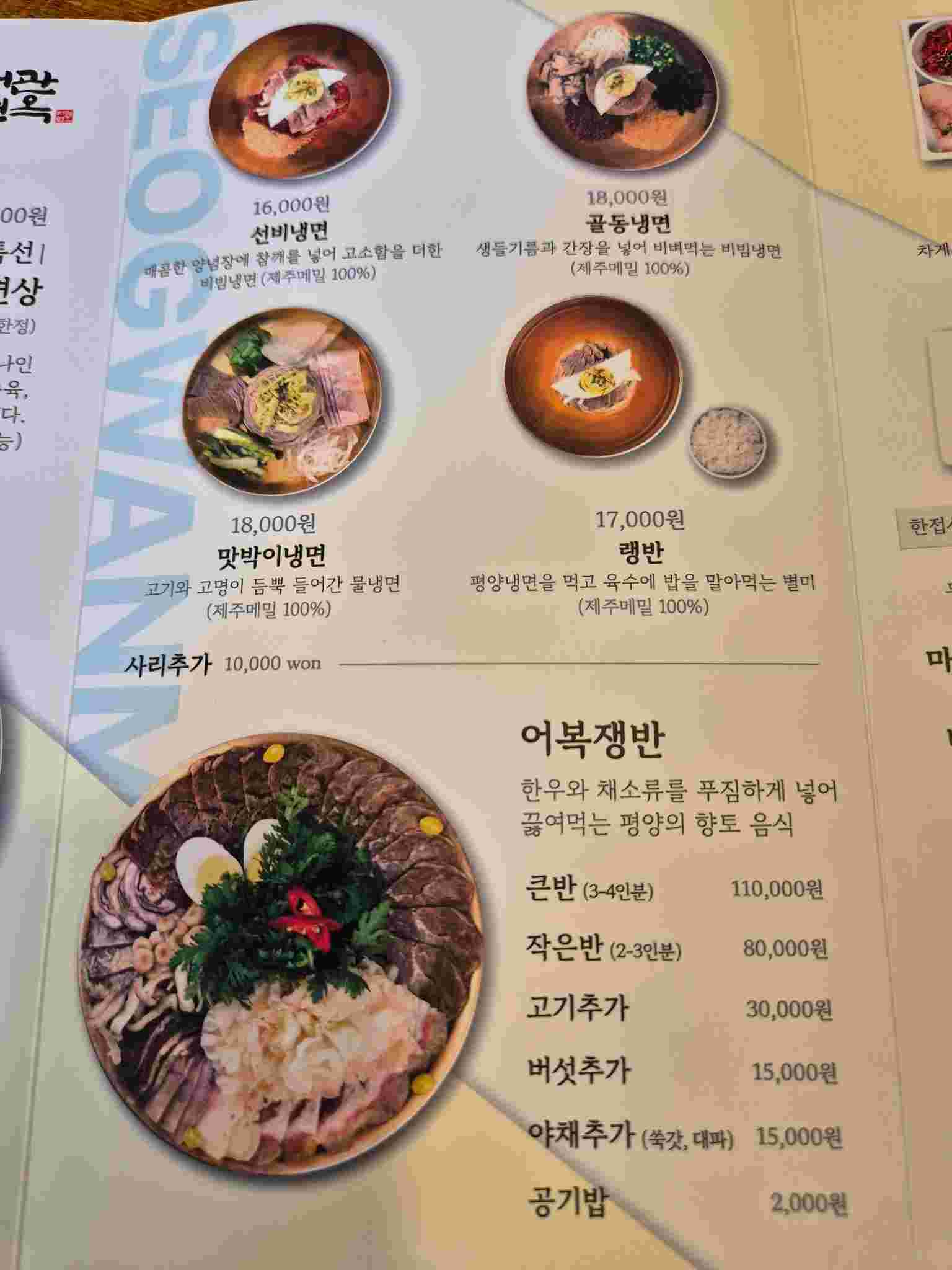 - 평양냉면: 16,000원