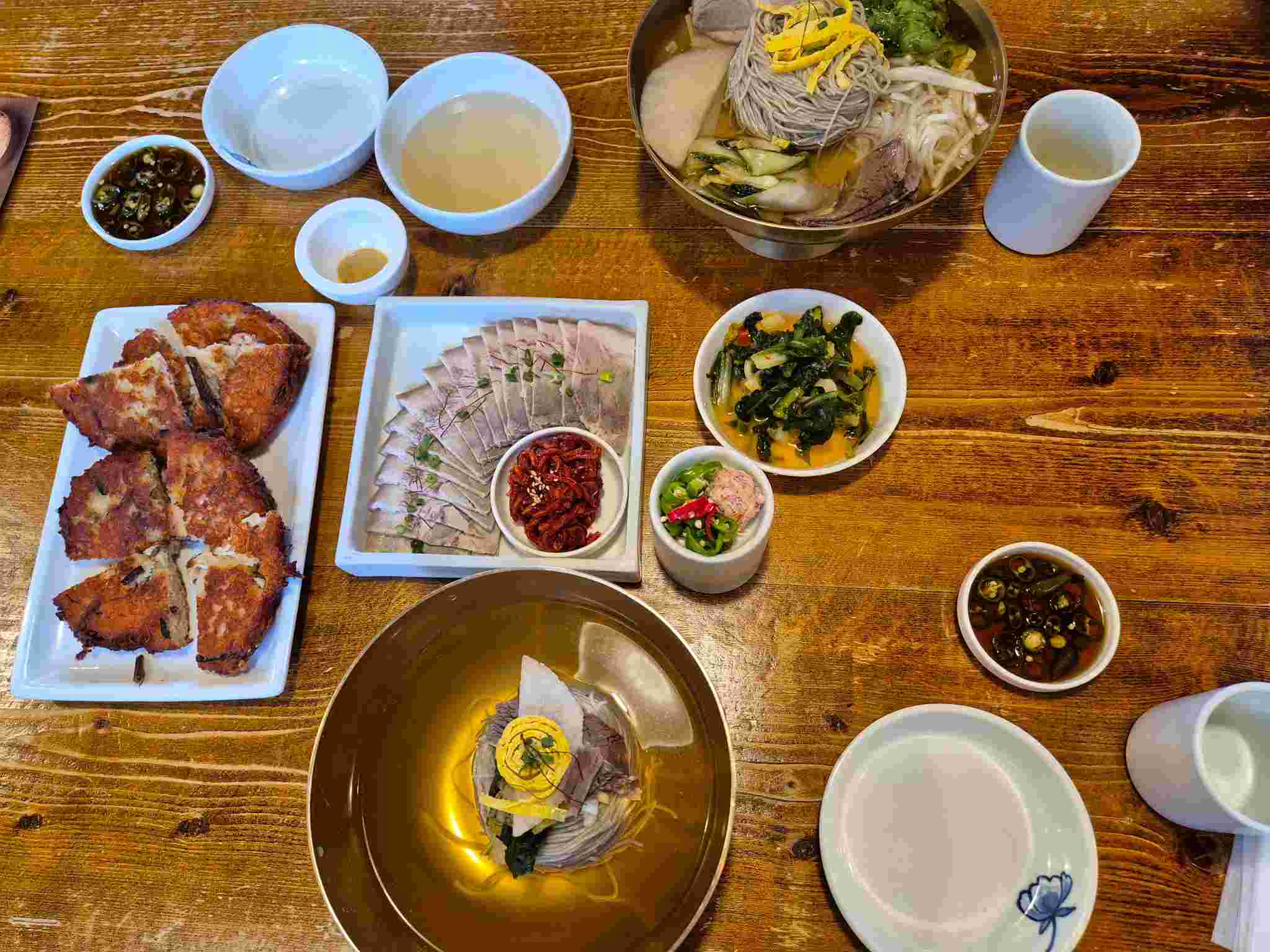메뉴 전체 사진도 담아보았습니다. 점심시간 방문이었는데 소식을 추구함에도 평일 점심치고 배부르게 주문하였습니다. 맛 평가를 하자면 평양냉면의 특성상 호불호가 확실한데요 저는 당연히 '호'이기에 방문하였습니다. 평양냉면 특징이라면 '이 맛도 저 맛도 아닌 슴슴함??'이 맛의 특징이라고 생각하는데요, 100% 메밀면에 슴슴한 육수가 제 취향에는 딱 맞았습니다. (평양냉면 안 드셔본 분들은 맛보기로 방문하기에는 다소 가격대가 있다고 생각도 드네요) 냉수육도 괜찮았지만 저는 빈대떡이 너무 맛있어서 배가 부름에도 계속 먹었습니다!! 지인이 배 부르다며 계속 먹냐고 놀라더군요ㅎㅎ