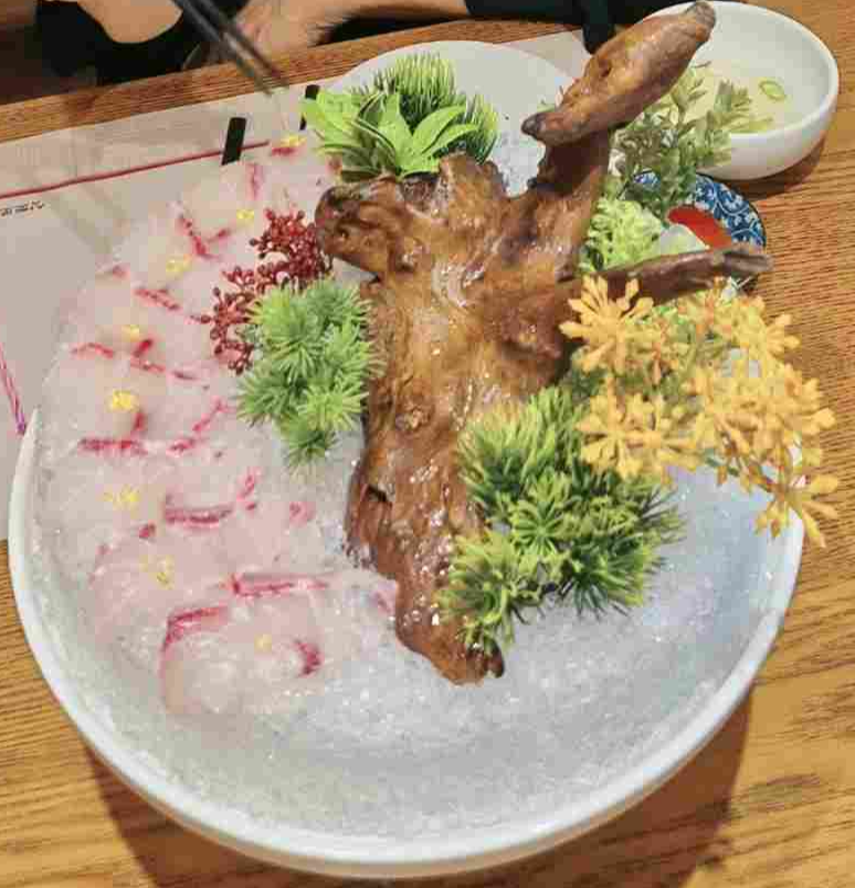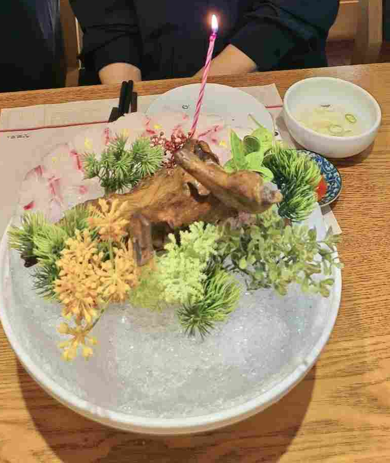 - ✅ 회 생일케이크: 금가루가 뿌려진 특별한 '회케이크'까지! (메뉴판에는 2만원이라고 적혀있었는데 저희는 인원수 때문인지, 시킨 메뉴때문인지, 아니면 다 생일자에게 다 제공하는건지 따로 요청하지 않았는데 무료로 제공받았습니다.)