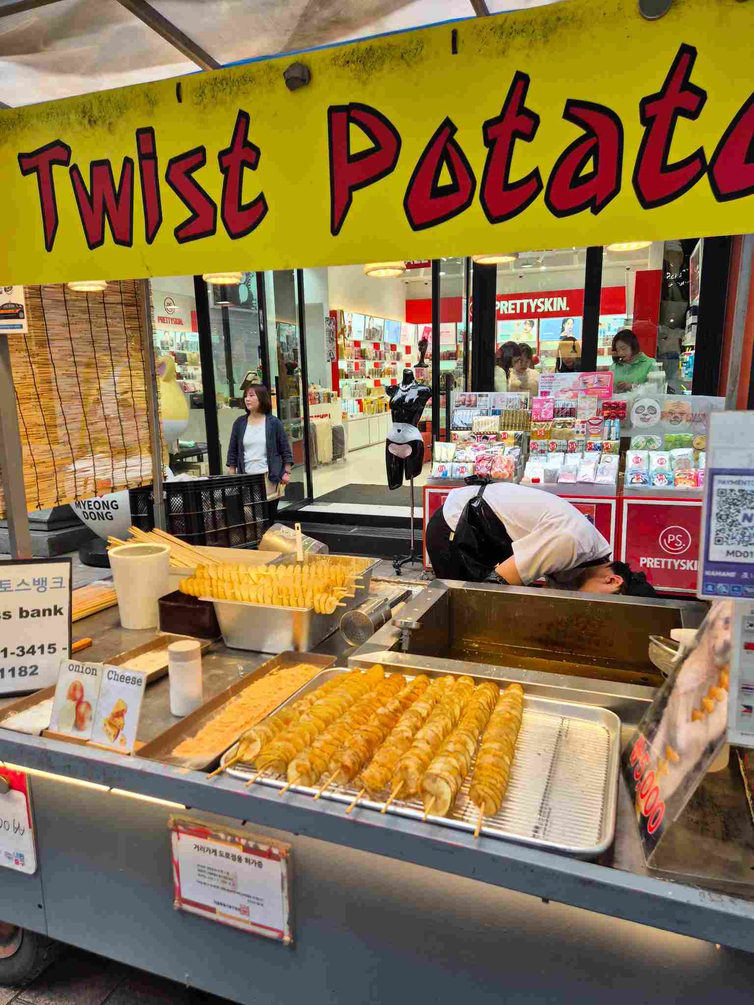 한국 길거리 음식의 상징, 꼬치에 꽂아 돌돌 말린 감자를 튀겨낸 트위스트 포테이토.